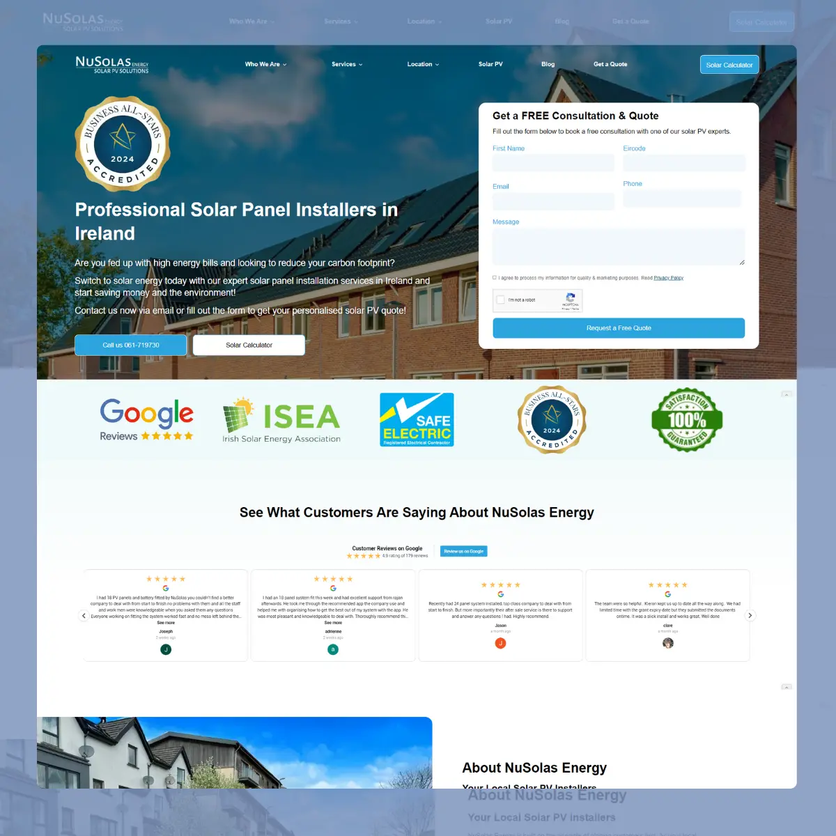 We partnered with NuSolas, a top solar panel installer in Ireland, to enhance their digital presence. Through strategic SEO, targeted Google Ads, and a mobile-optimised website, we boosted their visibility, traffic, and customer enquiries — leading to stronger rankings and higher conversions.